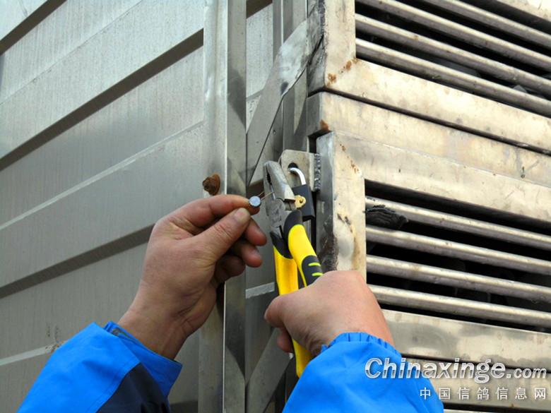 5 - 监放的韩城市信鸽协会裁判检查铅封及锁具。