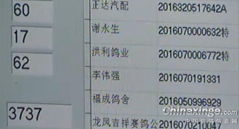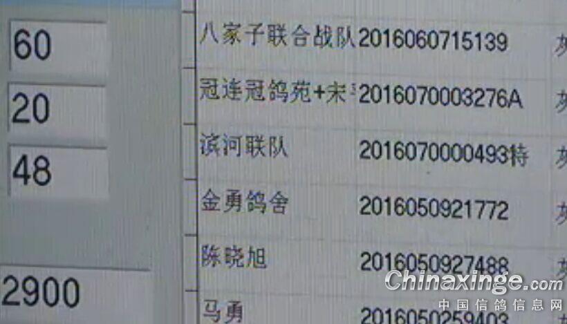 作品说明: 吉林省洮南市大成赛鸽公棚创立于2011年3月,公司本着公平、公开、公正的原则,致力于将大成公棚发展为鸽友信得过的公棚。大成公棚在总经理姚连城先生的努力下和广大鸽友的大力支持下已经成功举办了四届赛事,也得到了广大鸽友的好评,在省内也是屈指可数的好棚,2016年第五届秋季赛事更是创历史新高,预定会员1020人,收鸽达到了8265羽,省内也是收鸽最多的公棚。在公棚精心饲养训放到收费站上存棚五千多羽赛鸽,热身赛公集鸽上笼4736羽(因为有个别鸽友的一些原因未交费致使部分赛鸽根据规程不予上笼)当日归巢3966羽,可谓是高归巢率,以此也见公棚的养功!在热身赛后数日的休养调养后于2016年10月8日下午15时进行了秋季300KM预赛集鸽工作,为了体现公开、公正、公平的原则与现场集鸽同时同步视频网络直播,现场有来自本地和外地的鸽友对集鸽工作进行全程监督,公棚总经理姚连城先生更是亲临现场指导集鸽工作,在大家的共同辛苦下完成了集鸽工作,300KM预赛共集鸽上笼4205羽于9日早6点30分在通辽市库伦开笼放飞,司放地天气晴、无风,司放地经度:122°10′17.4″"纬度:42°50′33.1″",下面是集鸽现场花絮(图片来自集鸽直播视频截图)请大家欣赏,不喜勿喷。谢谢!在此预祝参赛鸽友取得好成绩!