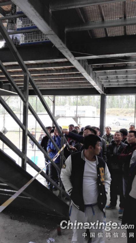 鸽友们耐心等待工作人员拿赛鸽下来,此时心情不错哦!