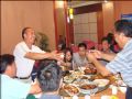 作品说明: 庆国庆渡中秋——重庆垫江翔友俱乐部亚军鸽友举办答谢酒会 九州信鸽竞飞翔,共庆祖国60华诞!重庆垫江县翔友赛鸽俱乐部,热烈庆祝中华人民共和国成了60周年。09年 特比环“国庆杯”决赛四川广元市。奖金、奖杯已经颁发,冠军、亚军、季军分别获得奖金在17000元以上,8日晚上,亚军得主举行答谢酒会,特邀请我参加,我到场祝贺,记录下了那和谐幢景场面。让鸽友共同欣赏重庆人的豪爽、耿直、好客。 垫江历史悠久,在夏隶属梁州域,西魏置邻州、容山郡、垫江县。位于重庆市中部,东经107°13′~107°40′、北纬29°38′~30°31′之间。东邻丰都、忠县,南连长寿、涪陵,西靠四川大竹、邻水,北壤梁平。在这1518平方公里土地上,生活着勤劳善良的93万人口, 养鸽历史悠久,民国时期都有着记载,新中国成了的1984年成立了县信鸽协会,如今有养鸽人500~600人,参赛鸽友200余人,信鸽协会两个,俱乐部一个,乡镇信鸽协会一个。每年均有300~1000公里比赛,协会与协会(不分县鸽会和火车头行业协会)、俱乐部与协会,会员与会员,鸽友与鸽友,和谐相处,共同打造垫江赛鸽美好的明天。今年以来已经打造出了11个赛鸽“万元户”。鸽友响亮提出,力争条件成熟,办一个县级赛鸽公棚。不管是谁获奖,只要“大气”一点,都要以不同方式举行酒会、“家庭宴”、“农家乐”等,答谢鸽友。 亚军鸽友刘天成,重庆市垫江县信鸽协会主席,垫江县桂溪镇人民政府分管农、水、林经济发展的镇长,为全县最大的经济中心强镇努力工作的同时,挤出百忙时间服务于鸽会工作。带领待业青年,退休职工养鸽陶冶情操,使退休职工老有所乐,使待业青年奔“致富”之路,为垫江和谐发展做出了积极贡献。参加垫江县翔友赛鸽俱乐部这次赛事,获得亚军,奖金(比冠军少1000元)也近2万元,为了感谢垫江县翔友赛鸽俱乐部这个平台,发挥了垫江鸽友展示的机会,同时报答鸽友们的关心。东方天成鸽舍鸽主——刘天成,于2009年10月8日晚上在《颐园大酒楼》举行酒会,答谢垫江县翔友赛鸽俱乐部经理、部长—张建国,电话—013709470455。李德惠,电话013896723718。以及鸽友,下面欣赏酒会图。