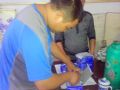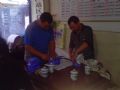 重庆铁路云阳信鸽分会秘书长李曾和重庆铁路涪陵信鸽分会主席周光华对特比环开封